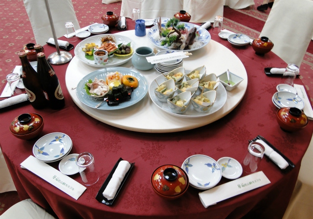 その後は観光ホテルにて、しっぽく料理の昼食。