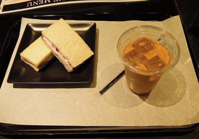 ▲ブルーベリー生クリームサンドイッチとロイヤルミルクティーを注文