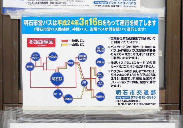 3月16日をもって運行を終了し、その後は民間に移譲されることになっている明石の市営バス。