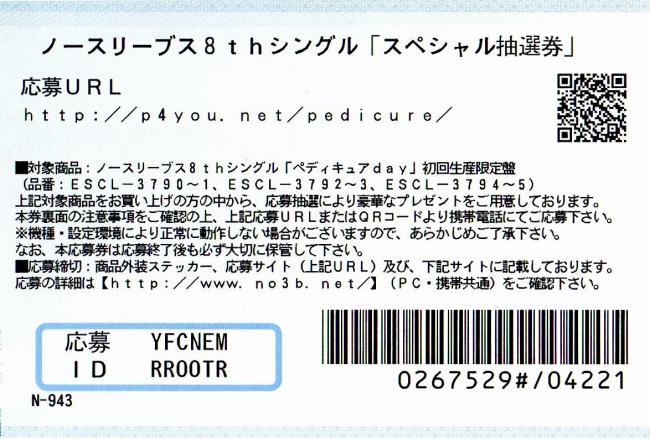 ▲8thシングル「ペディキュアday」初回盤に封入されていたスペシャル抽選券