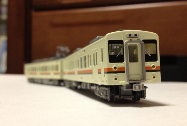 完成したモハ204-106を眺めます。この瞬間が楽しいんですよね~。