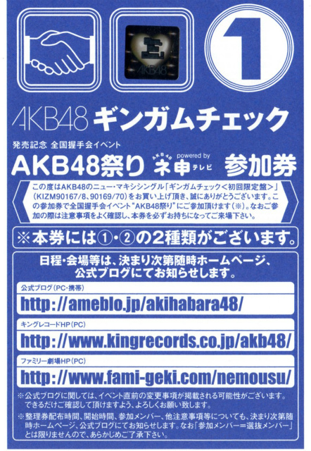 明日の本当の最終日に行きたくて(総選挙とも日程が被らないのでw)第一希望で申し込んだのですが、抽選で落選してしまい、第二希望の大阪一日目の本日参加が確定しました。