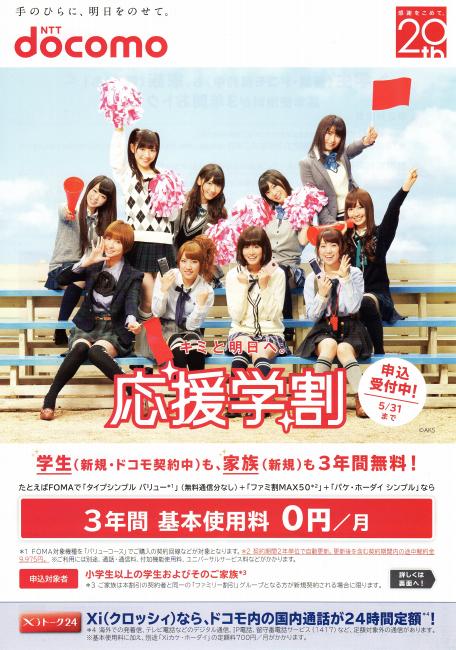 NTTドコモの「応援学割」のCMキャラクターにAKB48が選ばれています。